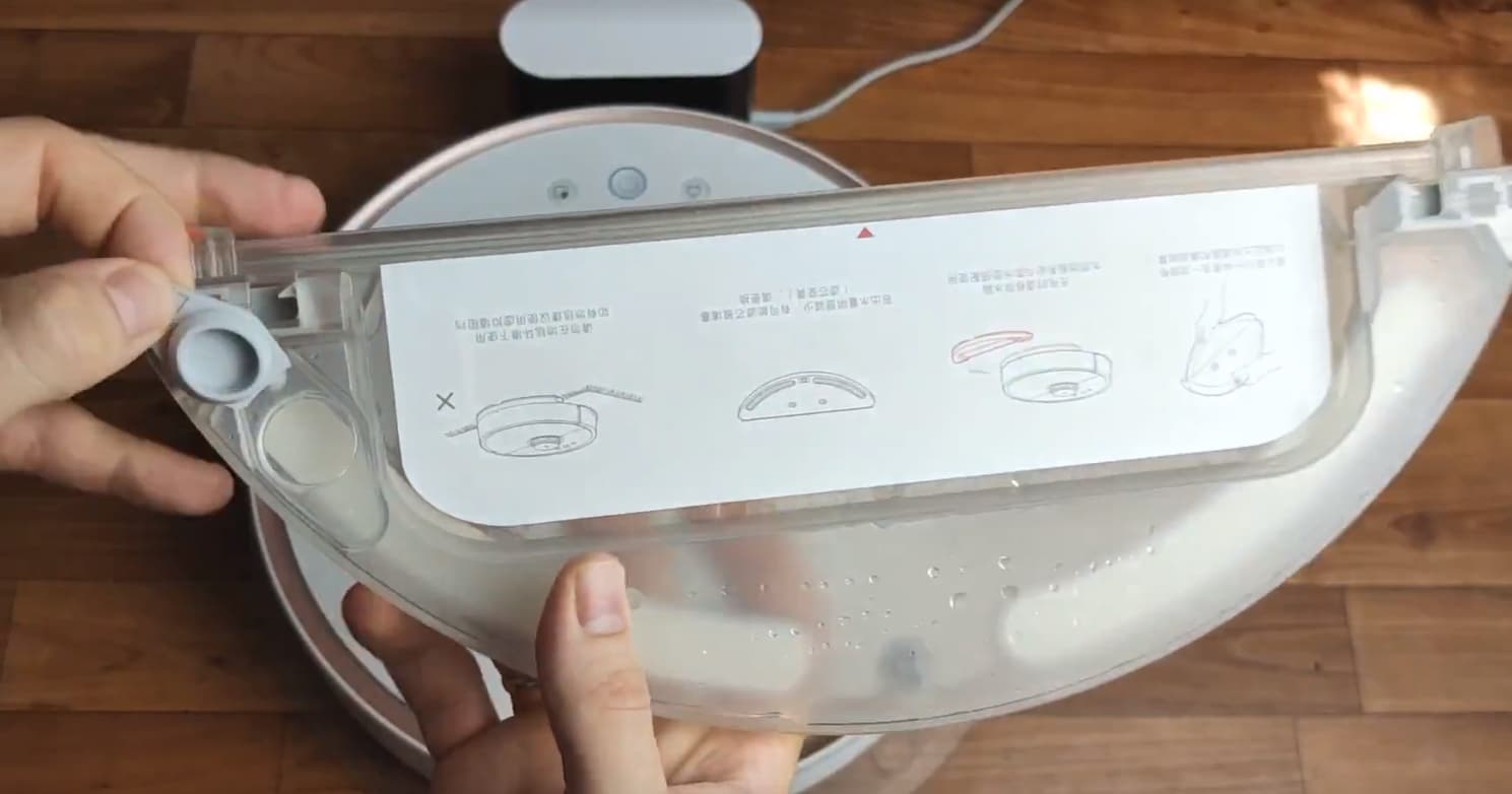 Для проведения влажной уборки в резервуар робота-пылесоса нужно налить обычную воду. Удобная конструкция позволяет сделать это непосредственно из-под крана