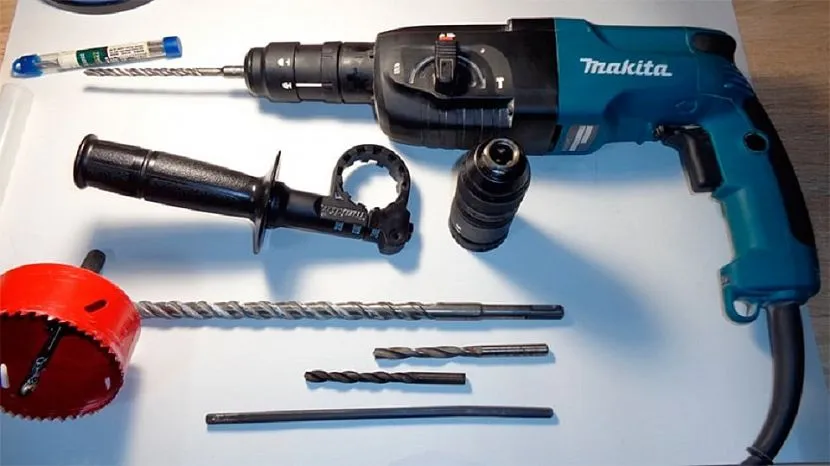 Четвертое: перфоратор и дрель отличаются всевозможными приспособлениями и их крепежом. Приспособления для перфоратора – это буры, зубила, коронки и штроберы. Приспособления для дрели – это сверла, покрытые специальным наплавлением из победита. Приспособления перфоратора имеют свободу в отношении патрона, что позволяет регулировать нагрузку на него при нанесении ударов. Диаметр всех этих приспособлений для перфоратора и дрели различный.