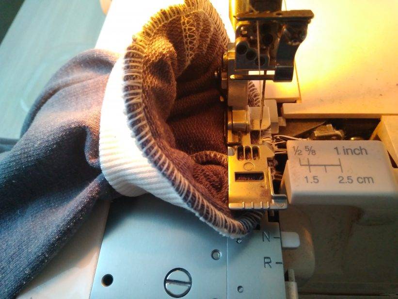 Именно поэтому, обычно рекомендуется срезы эластичных материалов, обрабатывать на спец. машинах. Они не только красиво оформляют срез, но и позволяют выдержать растяжение материала.