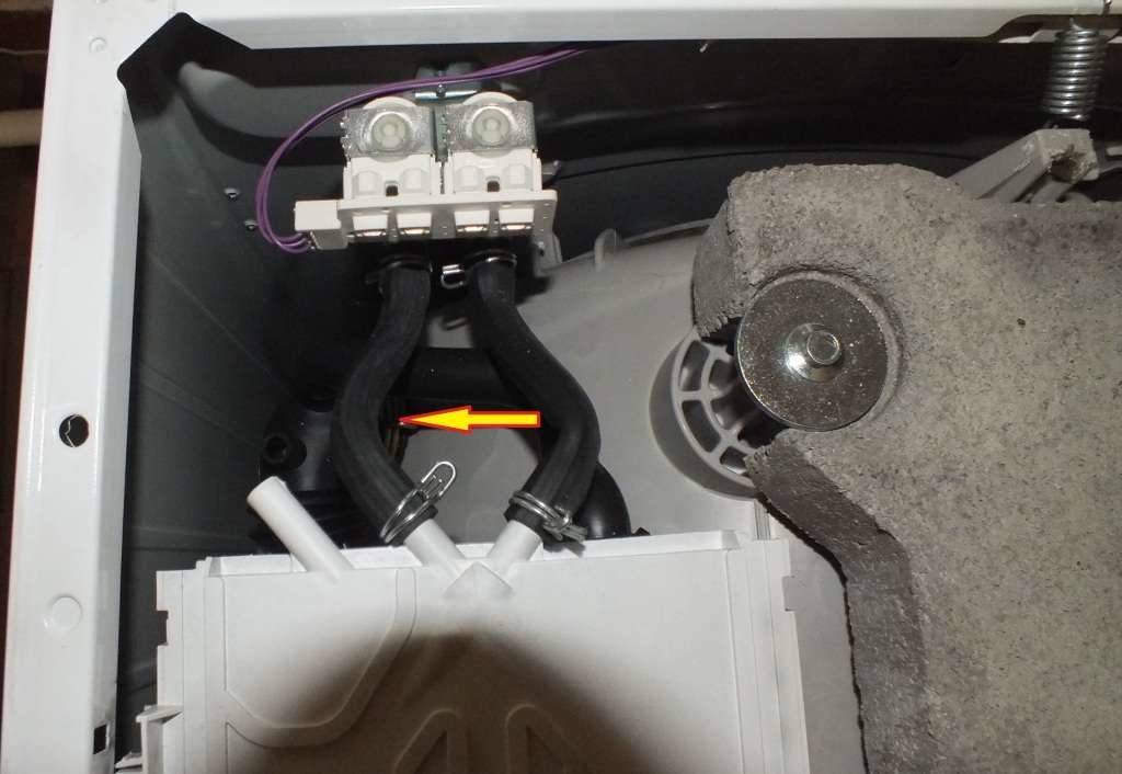 К датчику, кроме электрических проводов, подходит напорная трубка. В большинстве бюджетных моделей стиральных машин она изготовлена из пластика среднего качества. И на ней могут появляться трещины. Если такие трещины загерметизировать, то очень велика вероятность нормальной работы. Трубка внутри может засориться.