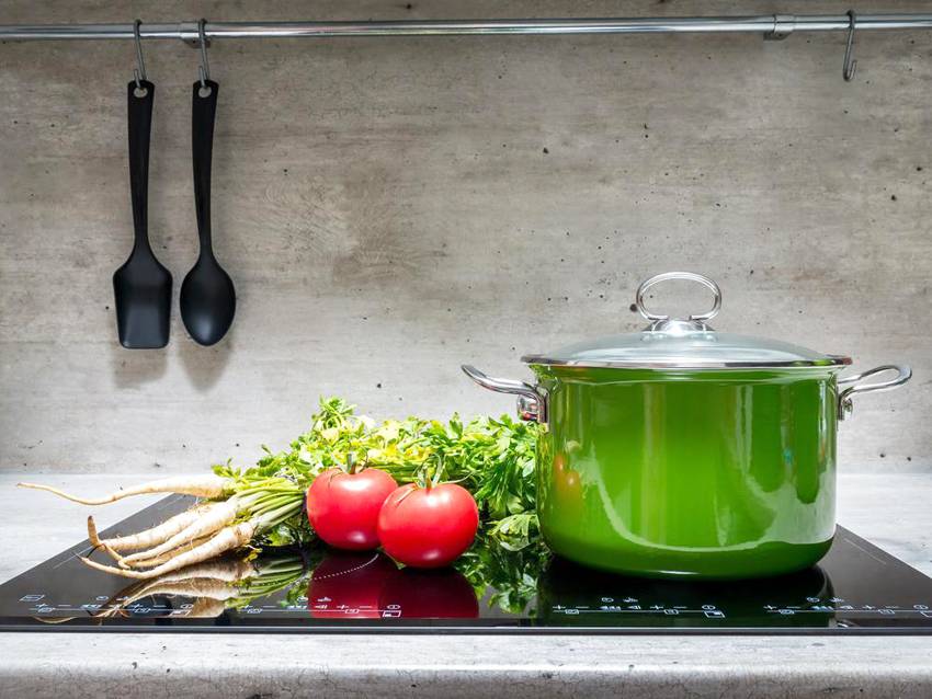 Оба типа приборов гораздо удобнее газовых плит, но работают они по-разному. Электрическая панель сначала становится горячей сама, а после нагревает посуду: это происходит благодаря тепловой энергии, которую передаёт проводник. Для готовки можно использовать посуду из разнообразных материалов, но обязательно с ровным и толстым дном, диаметр которого должен совпадать с размером конфорки (это поможет избежать потерь тепла).