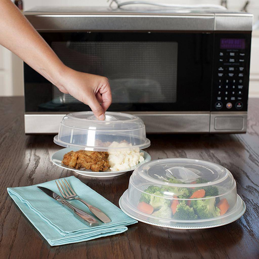Если вы готовите еду в специальной посуде, следует накрыть ее крышкой. Емкость не должна быть герметичной. Обычно посуда, предназначенная для СВЧ-печей, продается с крышками, сделанными из того же материала. Можно также накрыть емкость тарелкой.