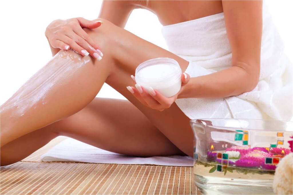 - Депиляция с помощью крема. Это вариант относится к химической депиляции. Крем для депиляции благодаря специальному составу негативно воздействует на волоски. Сеанс проходит так: крем наносят на выбранный участок, после определенного времени при помощи шпателя остатки средства счищаются вместе с волосками. Такая процедура поможет быстро сделать нужные области тела гладкими, однако не подойдет для лица, области бикини и подмышек. К недостаткам можно отнести и то, что компоненты крема зачастую вызывают аллергические реакции.