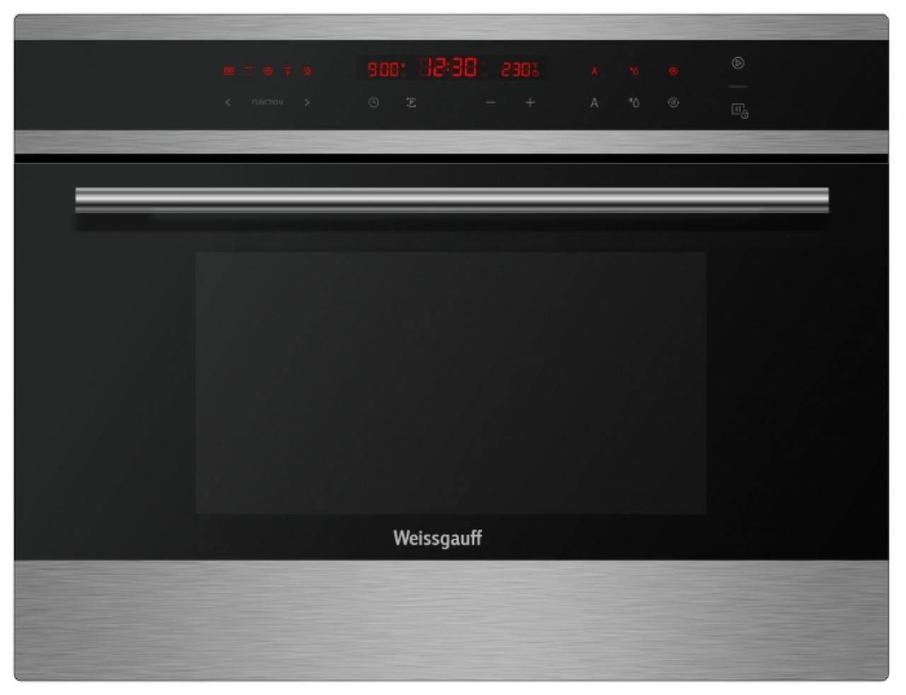 Немецкий бренд Weissgauff специализируется исключительно на кухонной бытовой технике. Духовой шкаф с функцией СВЧ имеет стильный дизайн. Сенсорное управление — удобно в использовании. Объём камеры — 44 литра. Несмотря на размеры духовки, техника удивляет своей компактностью.