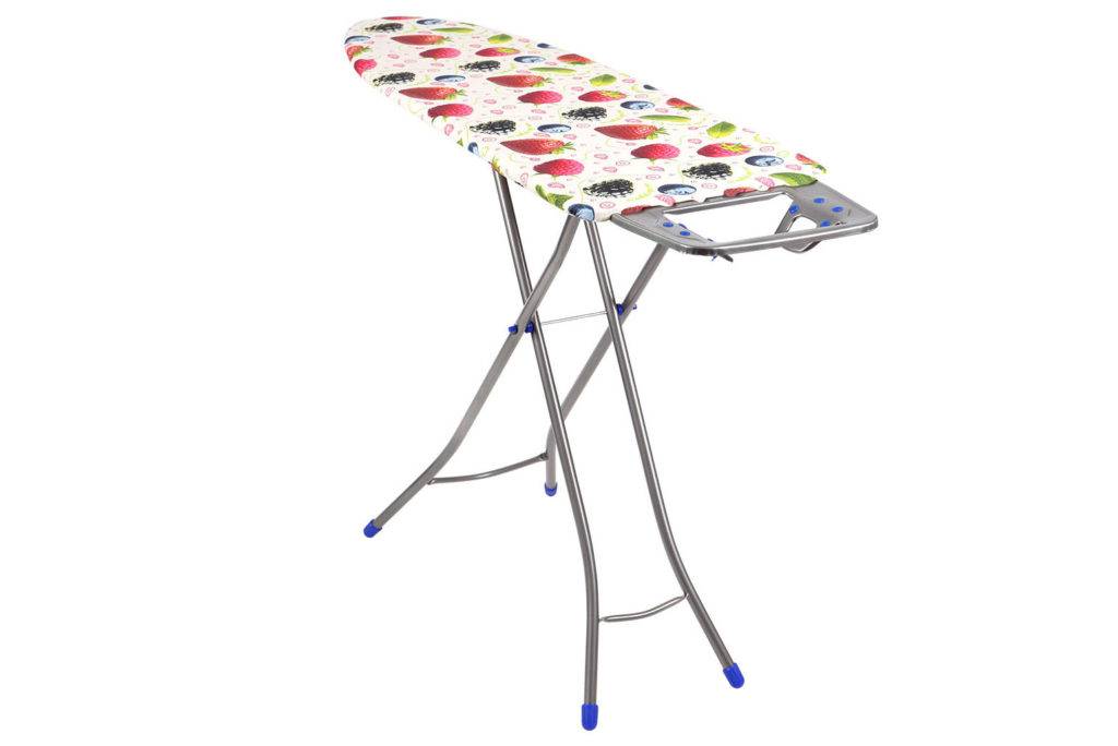 Прочность и устойчивость. При изготовлении основы чаще всего используют высокопрочный пластик и металл. Чтобы проверить стабильность, необходимо привести гладильную доску в рабочее состояние. Устойчивость зависит напрямую от опорной площади ножек — чем больше опорная площадь, тем устойчивее конструкция. Идеально, когда ножки вообще выходят за пределы самой столешницы. Чтобы предотвратить скольжение гладильной доски, на ножках должны быть одеты резиновые или же специальные пластиковые рельефные насадки. Доски, которые требуют частого перемещения, имеют колесики на ножках, обладающие системой блокировки.
