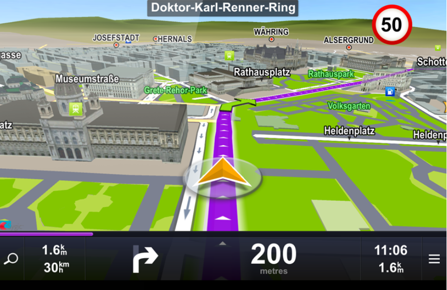 Приложение с большим количеством подробных детализированных карт. Программа пригодится в том случае, если планируете ехать заграницу. Для крупных городов доступно много полезных функций – информация о пробках и ДТП, отображение погоды и другие. Неплохо экономит интернет-траффик и может работать офлайн. Приложение является платным, а за покупку лицензии придется отдать 300-500 рублей.