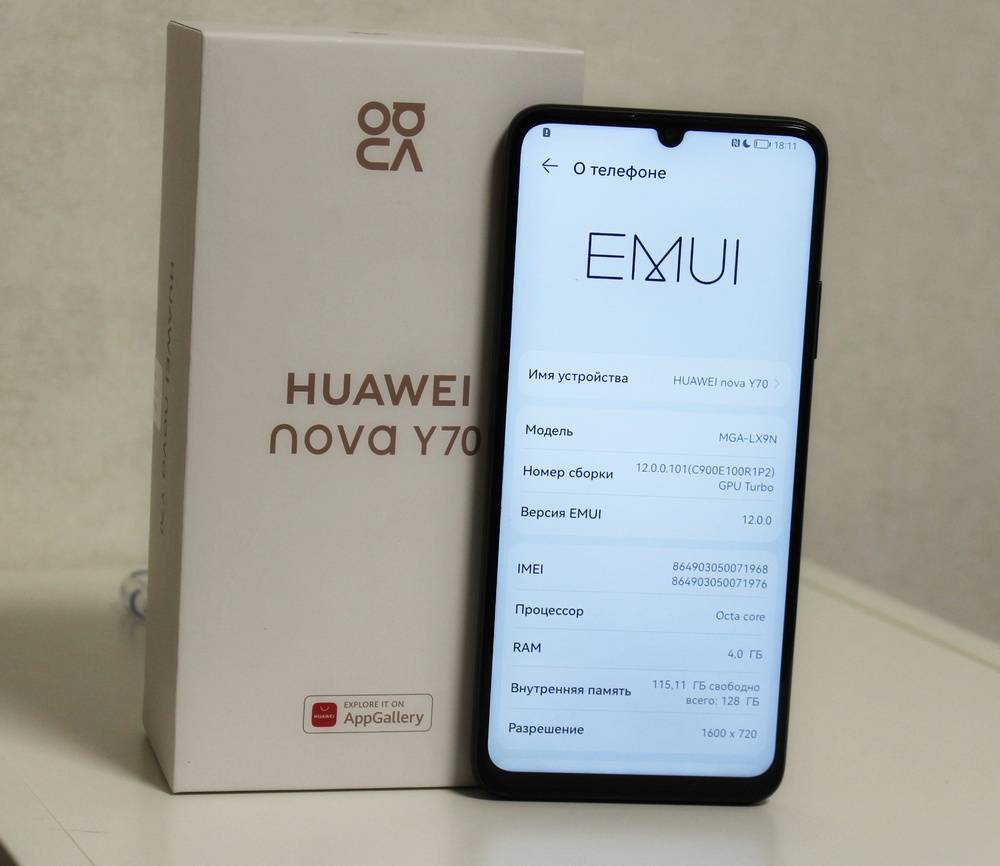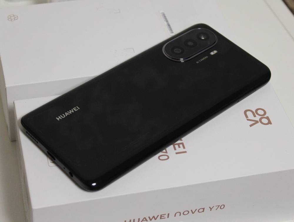 Корпус Huawei Nova Y70 доступен в двух цветовых решениях: черном и синем. У нас на руках модификация в строгом черном цвете.