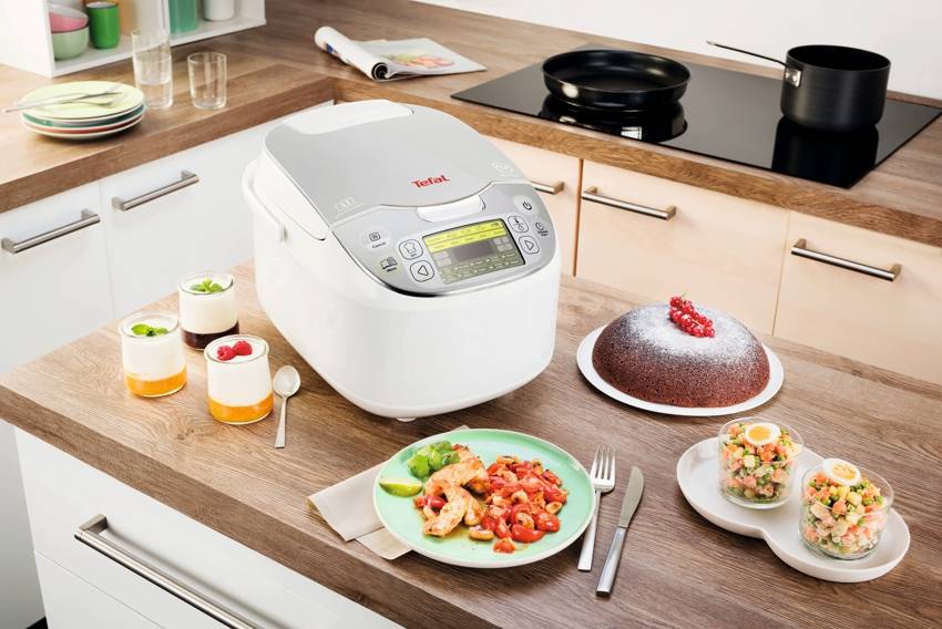 Довольно дорогая, не самая популярная, но вполне неплохая мультиварка с индукционным нагревом от Tefal. У нее есть несколько особенностей, которые отличают ее от других моделей этого типа – в комплект входят специальные лопатки для автоматического перемешивания продуктов, сферическая форма чаши помогает добить равномерного распределения температуры, создает эффект приготовления в печи. Двадцать автоматических программ помогают проще и удобнее готовить любимые блюда – каши, супы, плов, йогурты и многое другое. Модель хорошая, но не без недостатков – у многих пользователей быстро ломаются лопатки для перемешивания. Некоторые отмечают, что сенсорные кнопки реагируют с задержкой, выбор режимов сделан не очень удобно.