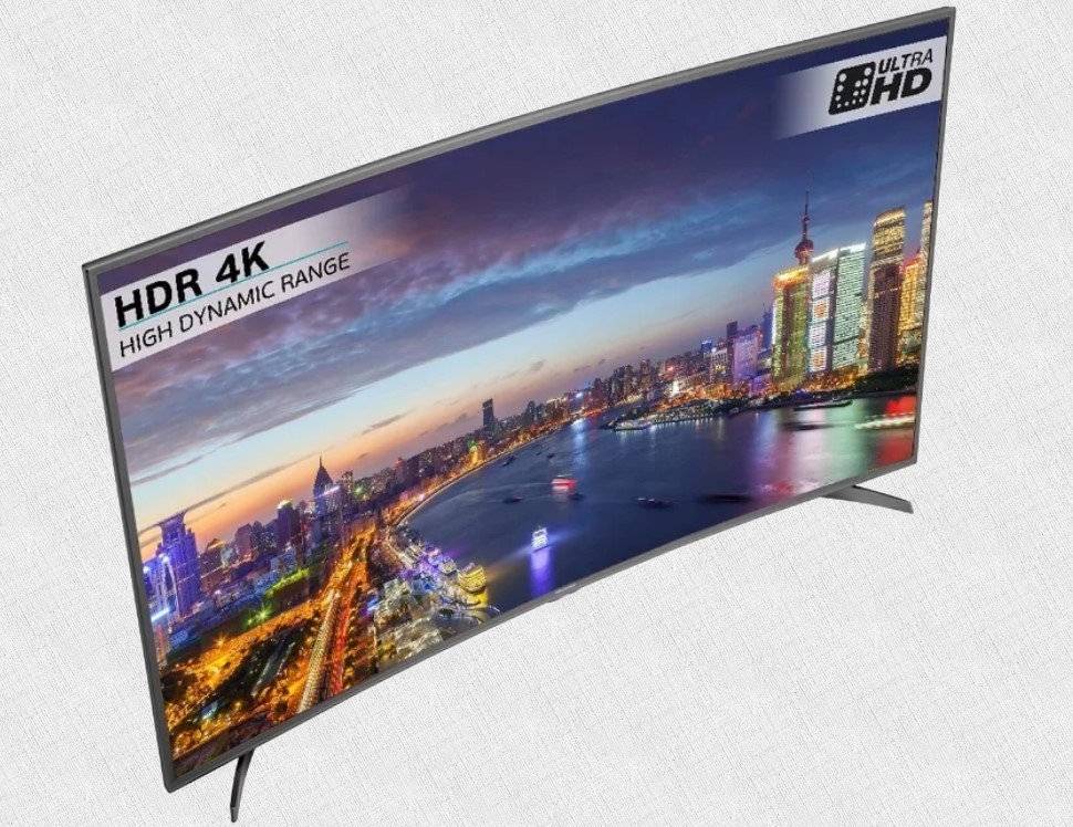 Модель с 55дюймовым изогнутым экраном от многообещающего бренда из Китая. Фирма прославилась во всем мире своей бытовой техникой и сейчас активно стремится на рынок телевизоров. Разрешение 4K, есть смарт ТВ. Поддержка современных интерфейсов, два динамика по 10 Вт каждый, автоматическая регулировка громкости. Телевизор помимо стандартных разъемов оснащен VGA, что позволяет подключить его к ПК, а также оснащен выходом на наушники. Тонкие рамки, цвет – золотой. Год выпуска – 2017. Цена – от 45 тысяч рублей.