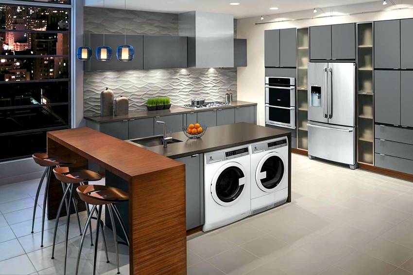 - Тип установки. По данному критерию различают машинки: с установкой в колонну (размещаются сверху на стиральных машинах), отдельностоящие (возможно поставить в любое удобное место, но они занимают лишнюю площадь) и встраиваемые (устанавливаются под полки, стеллажи и т.д., занимают минимум места и прекрасно вписываются в интерьер).