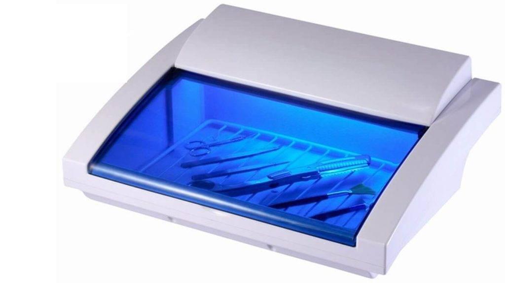 - Ультрафиолетовый – устройство более подходящее для хранения уже обработанных приспособлений из нержавеющей стали, нежели для их стерилизации. Не работает на высоких температурах, из-за чего не гарантирует гибель всех живых микроорганизмов. В то же время является аппаратом, предназначенным для обеззараживания инструментов из пластика и других материалов, не переносящих жар (расчески, пилки, бафы, спонжи).