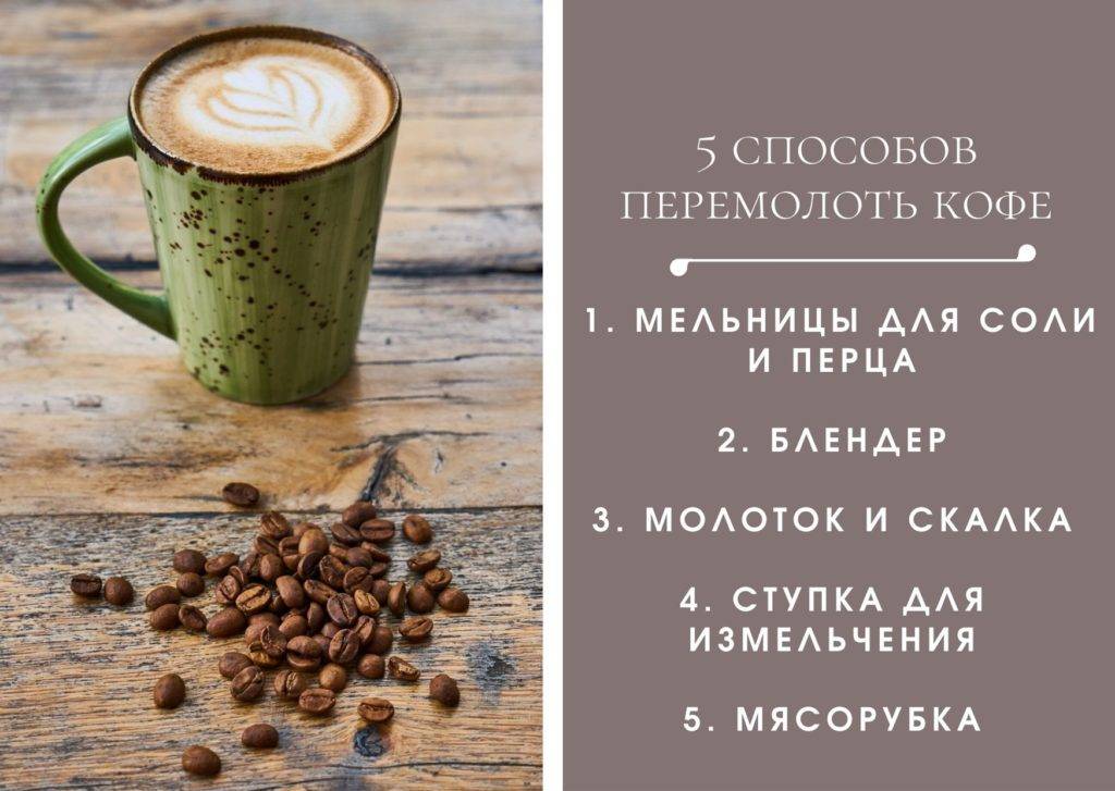 Если помол зерен кофе и приготовление ароматного напитка происходит редко, то на кухне может не оказаться специализированной кофемолки. Для разового приготовления можно воспользоваться подручными средствами или другими кухонными помощниками.