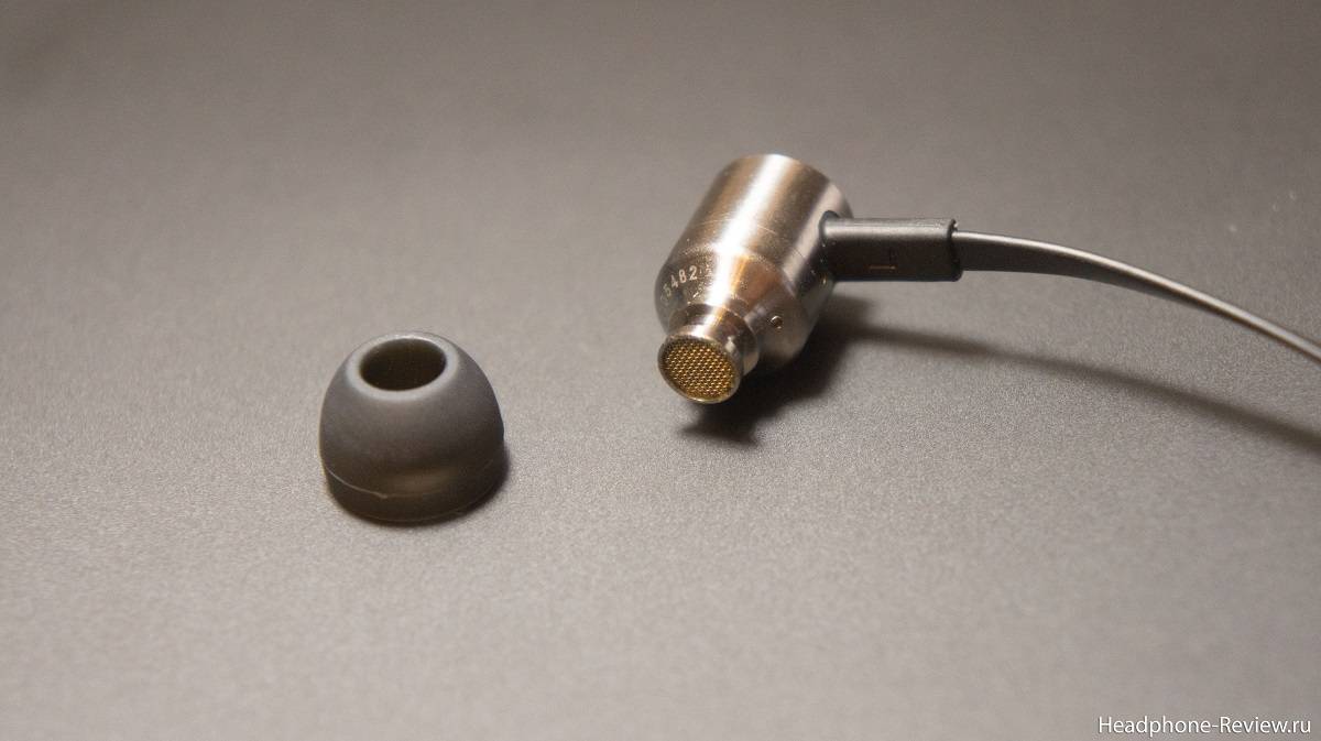 Наушники внутриканальные и вставляются непосредственно в слуховой канал, изолируя внешние звуки. Наушники имеют специальные резиновые насадки, которые обеспечивают устойчивость динамика в ухе и легко снимаются.