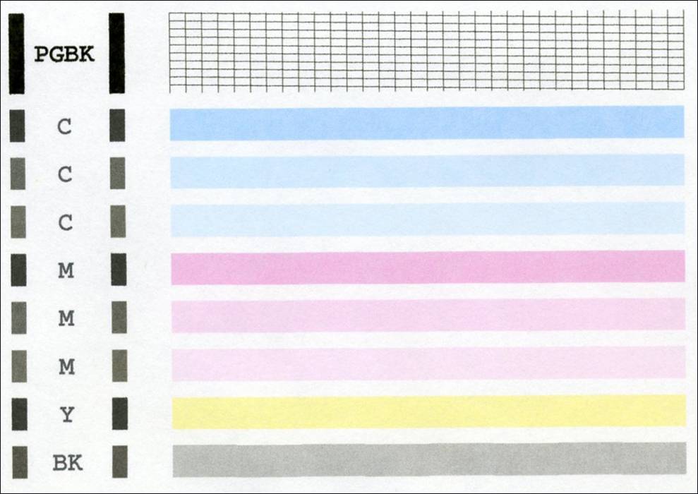 Если качество шаблона проверки дюз неудовлетворительно, возможно, стоит повторить чистку и еще раз напечатать этот шаблон.