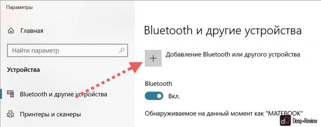 И теперь чтобы подключить наушники используем кнопку Добавление Блютуз или другого устройства, чтобы выполнить сопряжение.