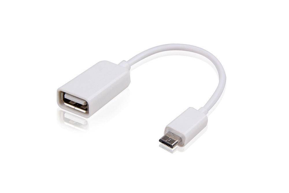 Он представляет собой короткий провод на одной стороне которого имеется порт подключения для USB 2.0, а на другой штекер для включения в разъем microUSB на телефоне.