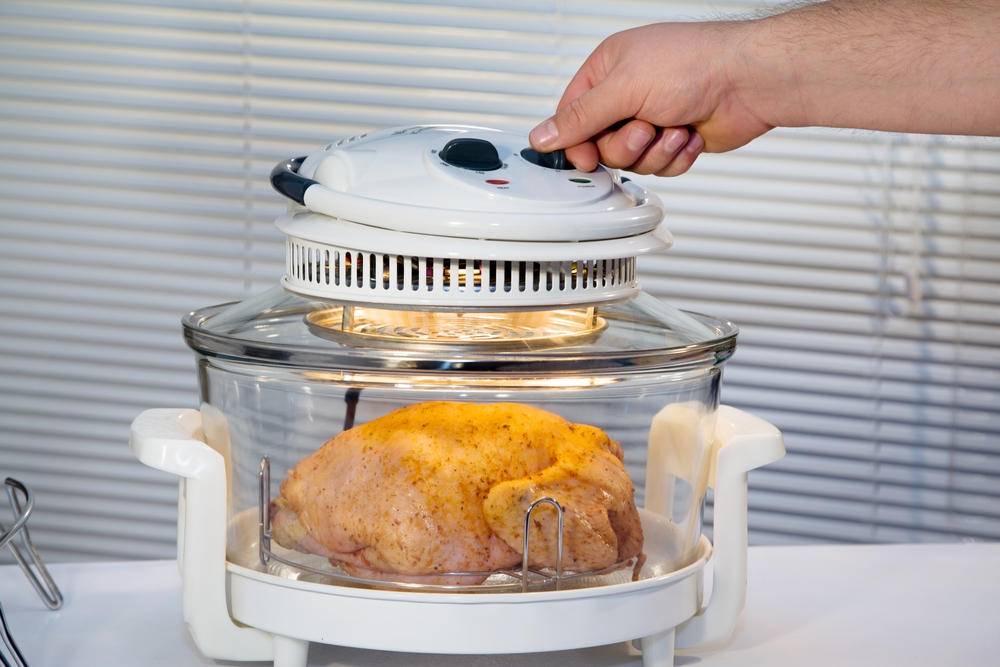 Прибор готовит при помощи потоков горячего воздуха, который свободно циркулирует в специальной емкости для готовки. Во время процесса приготовления пользователю не требуется постоянно переворачивать пищу. Также для готовки не требуется масло, при этом еда получается сочной и ароматной, блюда пропитываются собственными соками и становятся нежными и очень мягкями.