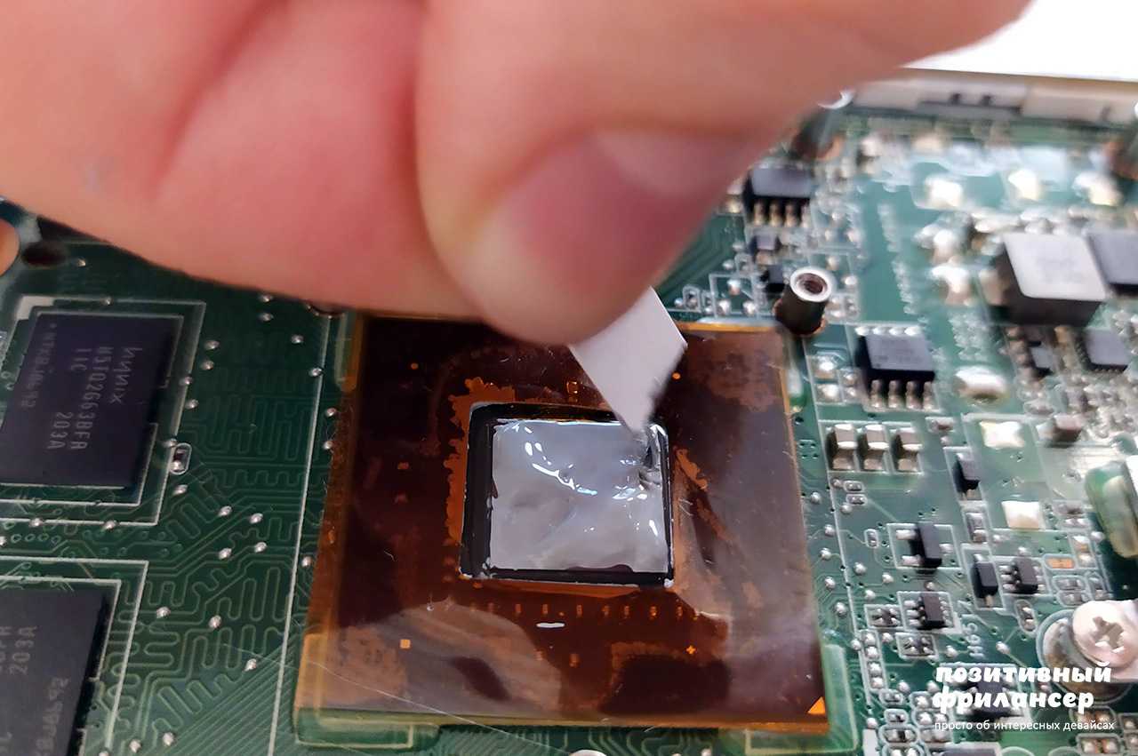 В таких случаях, важно соблюдать осторожность, стараясь не поцарапать поверхность микросхемы. Если в вашей модели используются прокладки, то их можно заменить на аналогичную термопасту