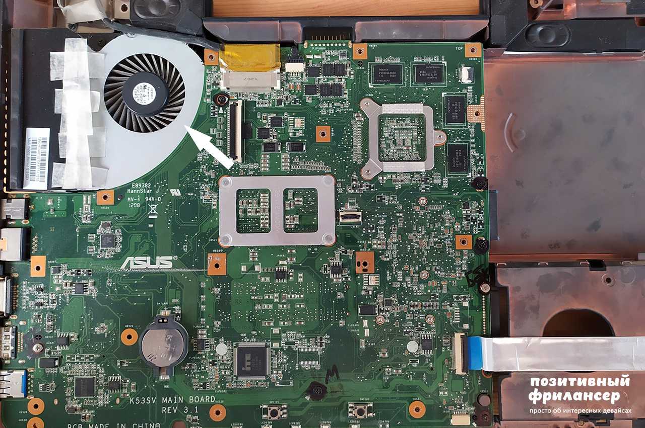 Чистка вентилятора ноутбука выполняется всего за пару шагов. Как я уже говорил, для того, чтобы понять, как правильно разбирается ваша модель, воспользуйтесь поисковиком или техническим руководством.