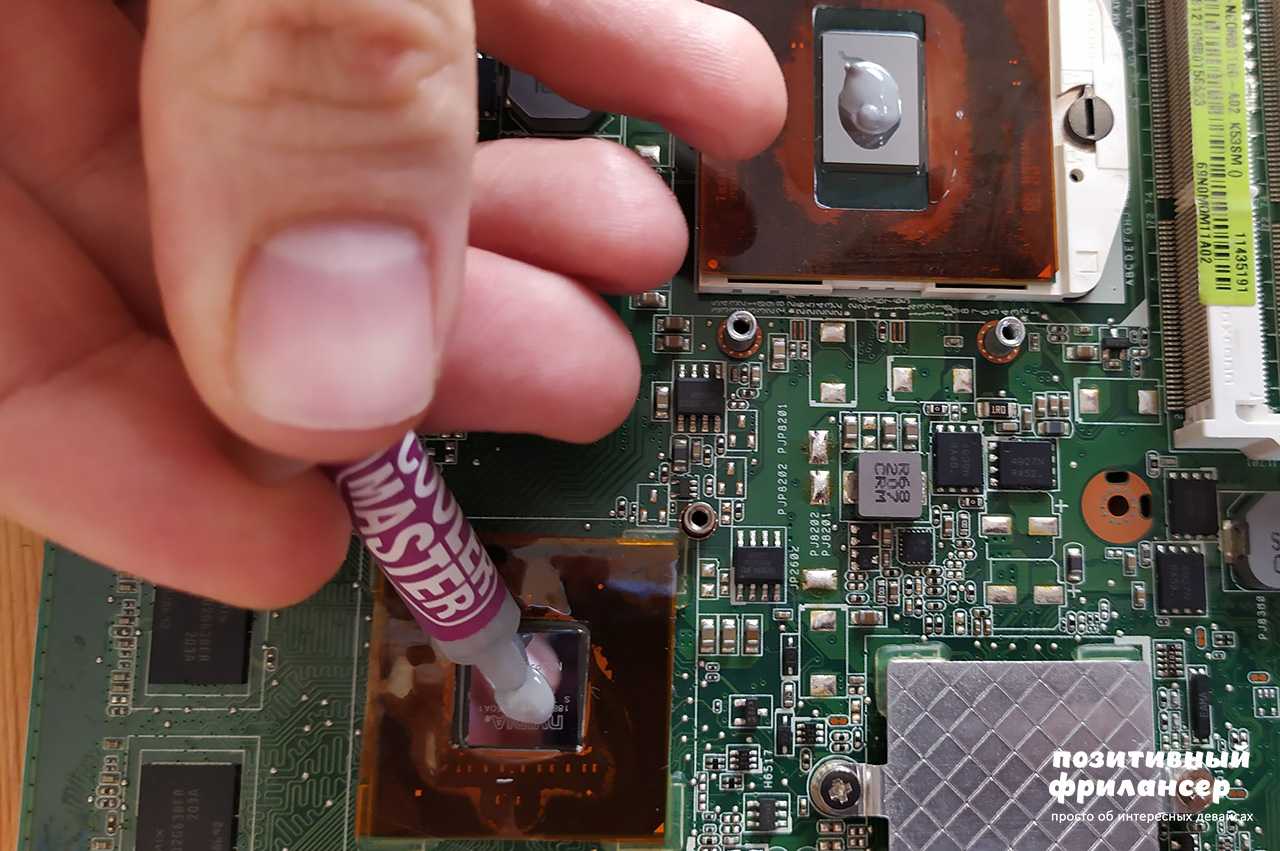 Как правило, термопаста быстро высыхает у ноутбуков, которые страдают от чрезмерного перегрева. При необходимости удалите остатки старой пасты и нанесите новую, тонким и равномерным слоем.