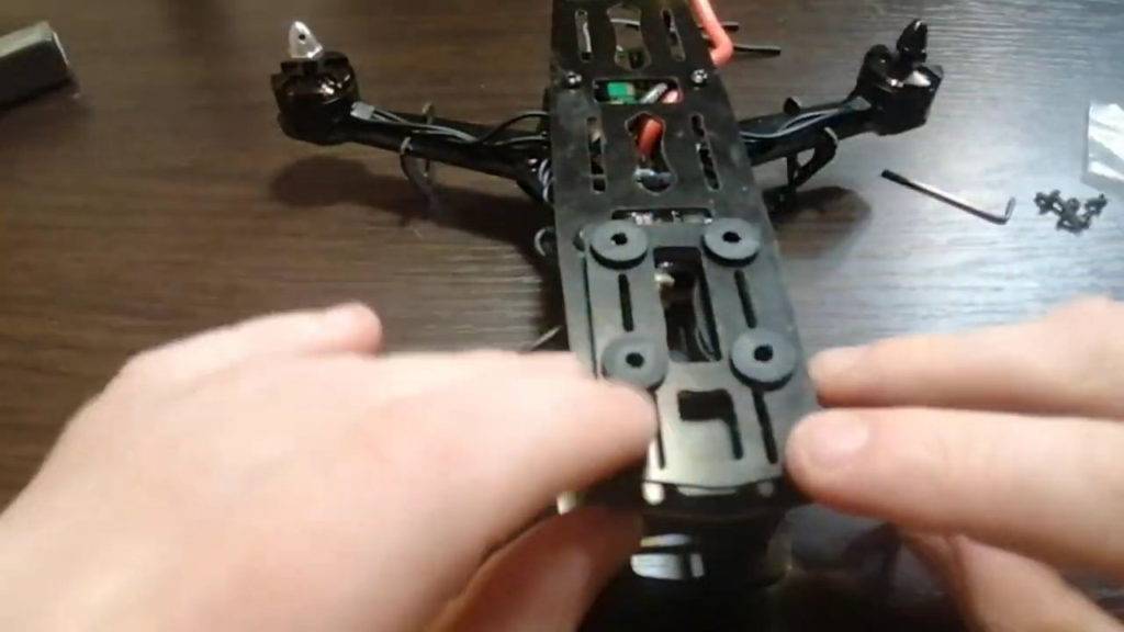 При получении хорошего навыка пилотирования вы можете в дальнейшем снять ее. Подключение камеры обычно сводится к установке в нее карты памяти (если она не стоит по умолчанию), креплению камеры в корпусе, удалению фиксатора с камеры и стабилизатора (при наличии), снятию защитных чехлов и подсоединению провода