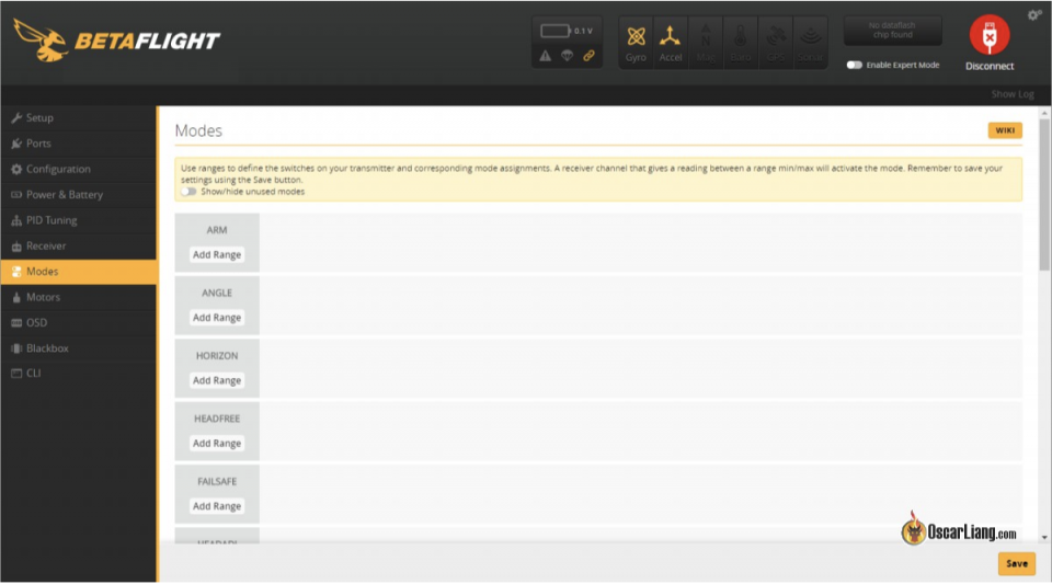Некоторые предпочитают отключать это для режима Acro, вы можете сделать это, включив FPV Angle Fix в разделе Modes, назначив тот же переключатель, который вы используете для режима Angle.