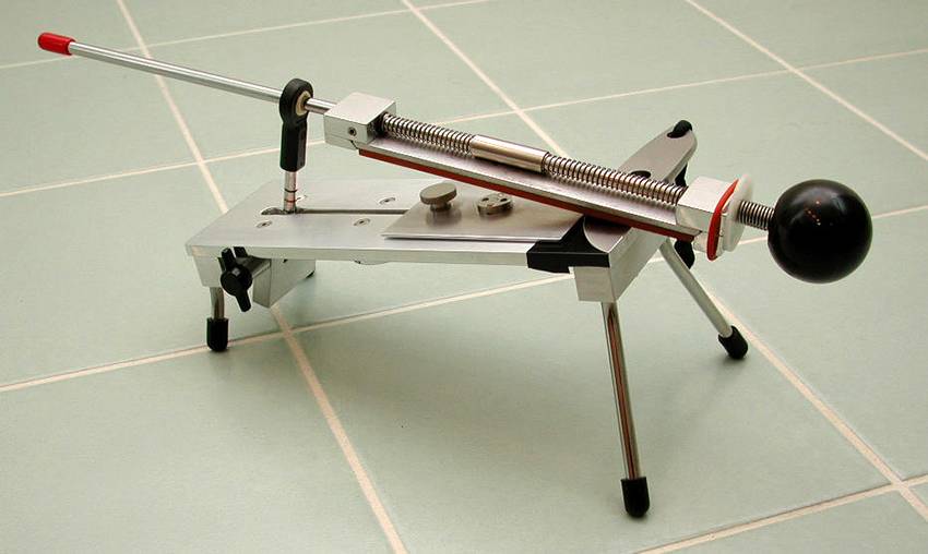 Каким бы авторитетным не был этот метод – удержать лезвие в фиксированном положении практически невозможно. Поэтому существуют различные приспособления, удерживающие клинок под определенным углом.