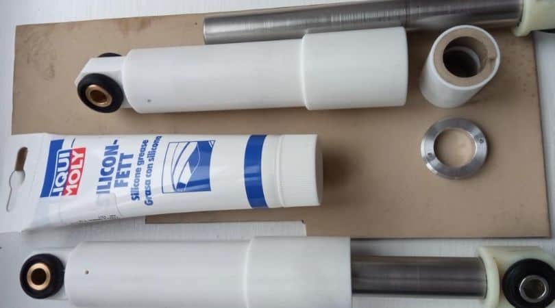 Чтобы исключить излишнее сопротивление воздуха, поршень амортизатора перфорируется. При этом смазка в силу густой консистенции остаётся внутри корпуса.