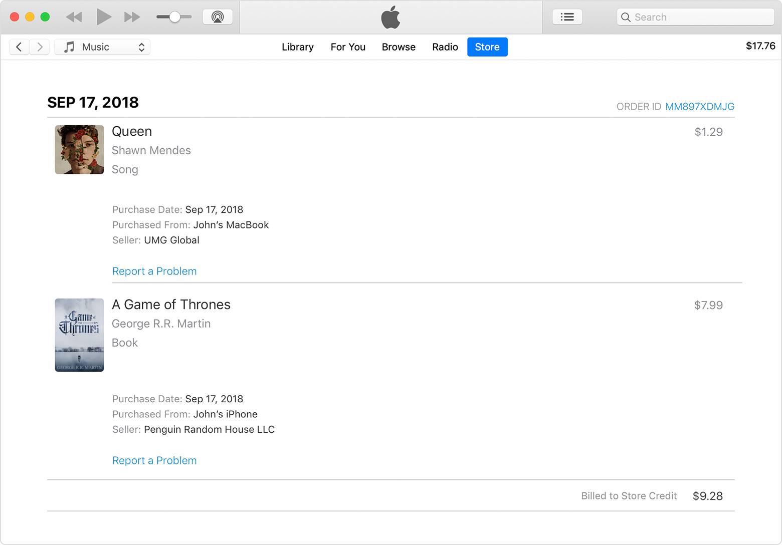 Нажмите кнопку под ценой объекта, чтобы увидеть дату покупки или загрузки объекта, которая может отличаться от даты списания средств и названия устройства, которое вы использовали для его покупки. Чтобы запросить возврат, нажмите «Сообщить о проблеме», чтобы открыть запрос на возврат на сайте.