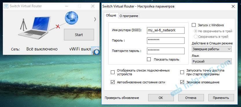Но если вы все таки выбрали этот вариант, то могу посоветовать следующие программы: Virtual Router Plus, Maryfi, Connectify, Switch Virtual Router. О их настройке я подробно писал в отдельной статье: https://help-wifi.com/nastrojka-virtualnoj-wi-fi-seti/programmy-dlya-razdachi-wi-fi-s-noutbuka-v-windows-10-8-7-zapusk-tochki-dostupa/. И отдельная инструкция о настройке Switch Virtual Router.