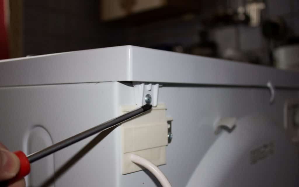 Чтобы правильно разобрать стиральную машину Samsung, мы рекомендуем выполнить следующие действия. Начать процесс нужно со снятия верхней крышки, для чего нужно взять отвертку и открутить два самореза, расположенные на задней части машины