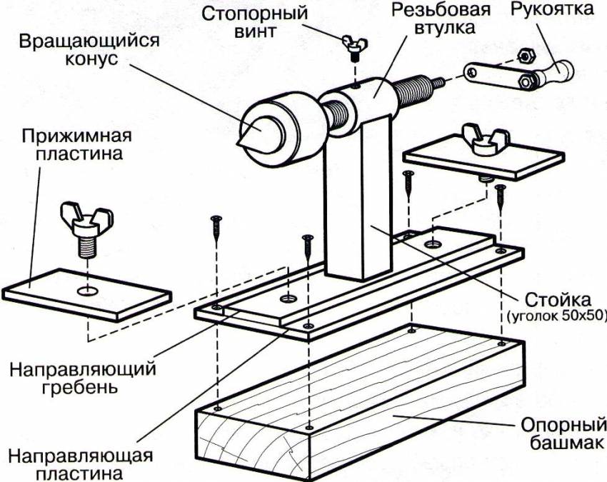 Устройство задней бабки самодельного токарного станка по дереву