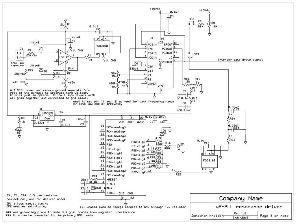 В этой схеме используется микропроцессор Arduino для отслеживания разности фаз между напряжением инвертора и емкостью конденсатора. Используя эту фазу, он вычисляет правильную частоту с использованием алгоритма «C».