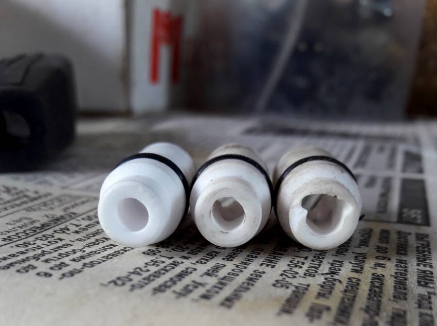 - Оставшийся керамический наконечник вставляют в старый водопроводный кран.