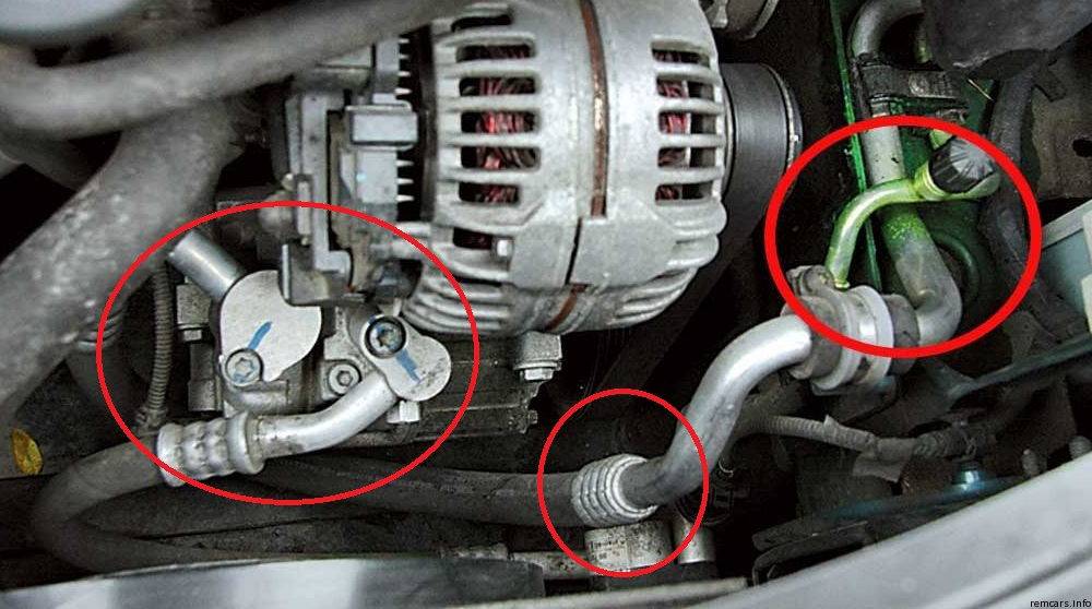 Проверить нехватку фреона можно несколькими способами. Для начала прислушайтесь, не слышно ли звуков щёлкающего характера в районе компрессора при включении системы кондиционирования. При их наличии можете смело отправляться в ближайший автосервис для дозаправки кондиционера. Отсутствие щелчков не означает, что с объёмом фреона в системе всё в порядке. Второй способ диагностирования этой неисправности заключается в визуальном осмотре трубок устройства. Если в каком-нибудь месте обнаружите разводы масла – это означает, что имеет место быть утечка фреона.