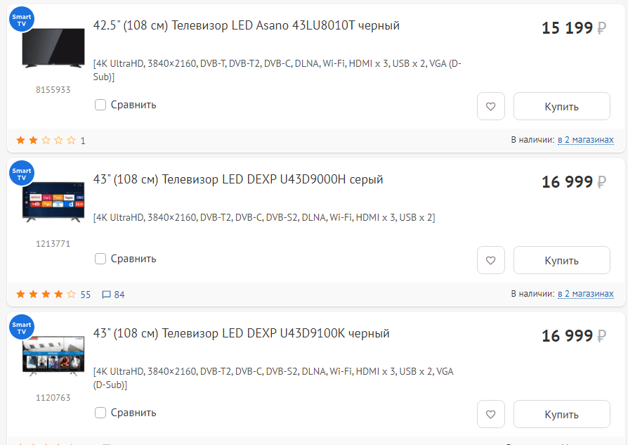 Несколько видов телевизоров в линейке
