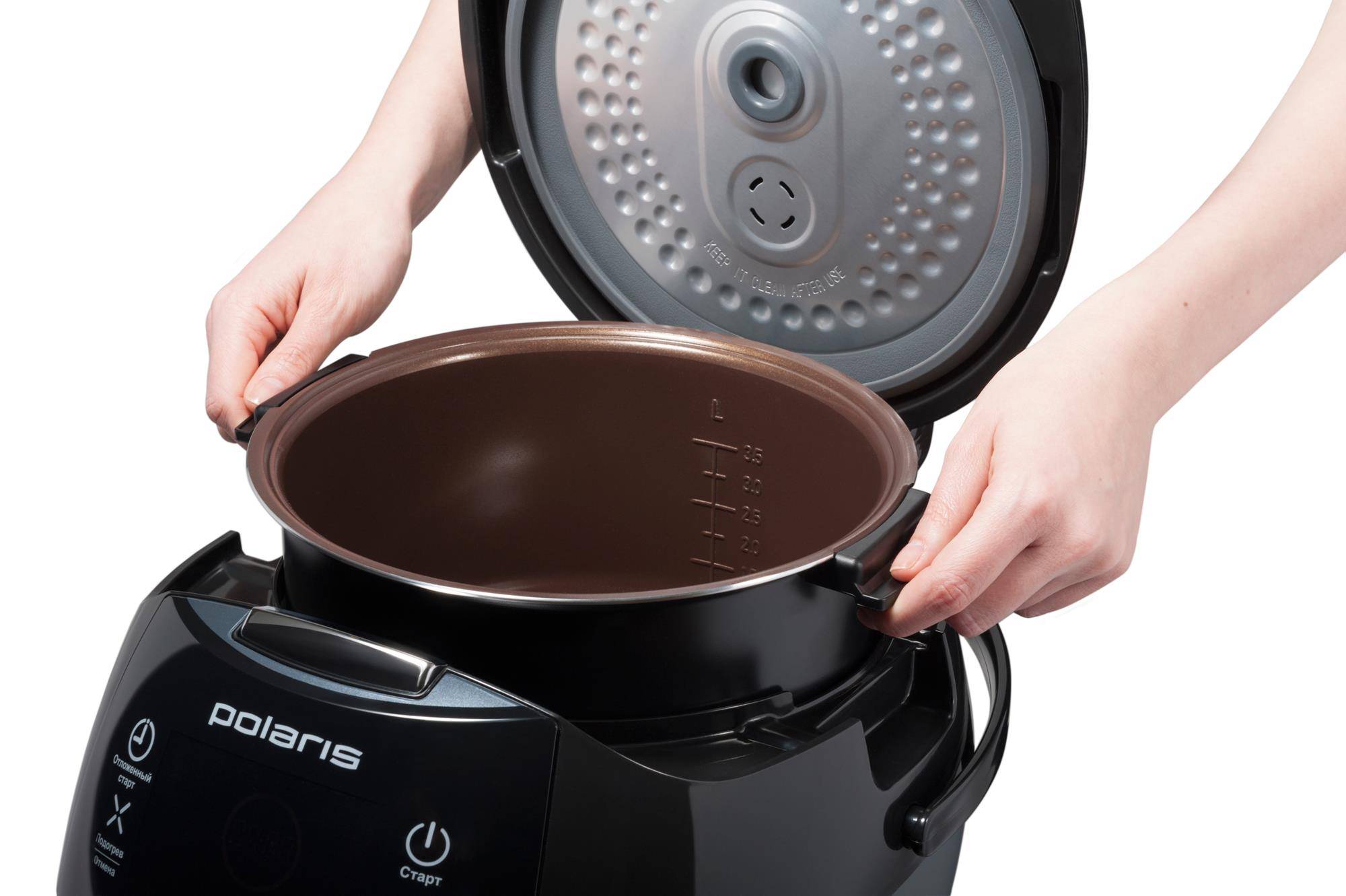 «Поларис» выпускает лучшие мультиварки для домашнего использования по приятной цене. Эта модель рассчитана на 5 л и подходит для среднестатистической семьи. Обладает антипригарным покрытием чаши, которое устойчиво к царапинам и высокой температуре.