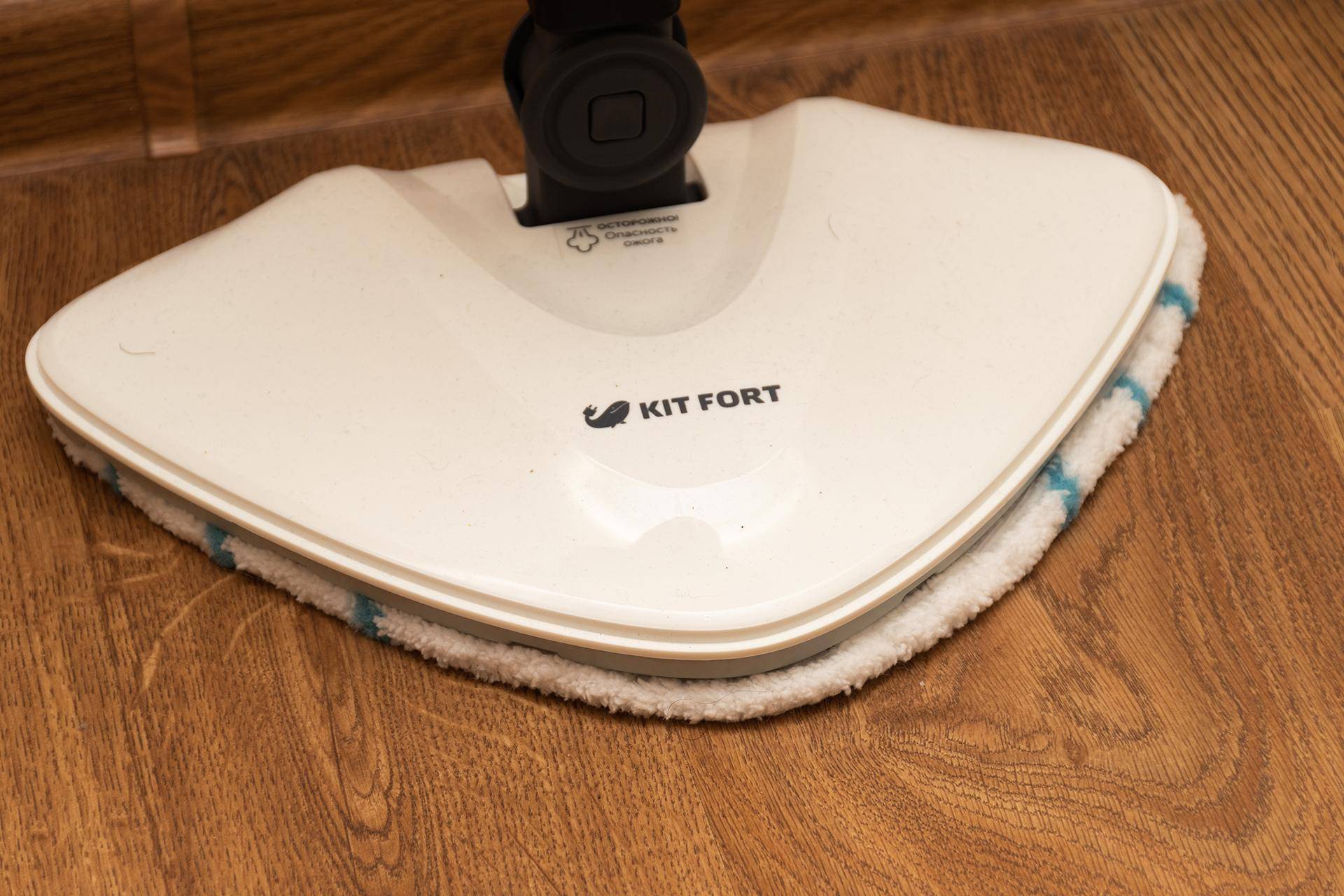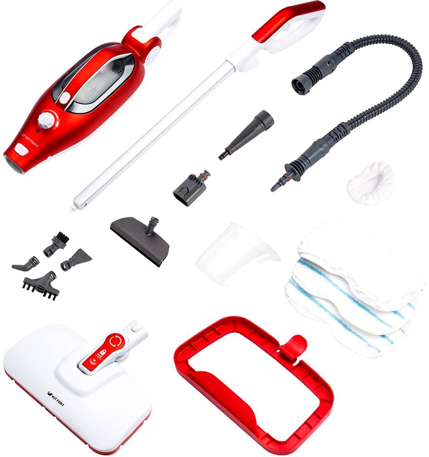 Одной из лучших универсальных паровых швабр является модель Kitfort КТ-1005, которую по функциональным особенностям можно сравнить с пароочистителем. Устройство эффективно очищает не только напольные поверхности, но и стены, текстиль и разные варианты оснований. Паровая швабра Китфорт может выполнить отпаривание складок штор и одежды. Насадка для пола имеет гибкое крепление, которое позволяет эффективно обрабатывать поверхность возле ножек мебели.