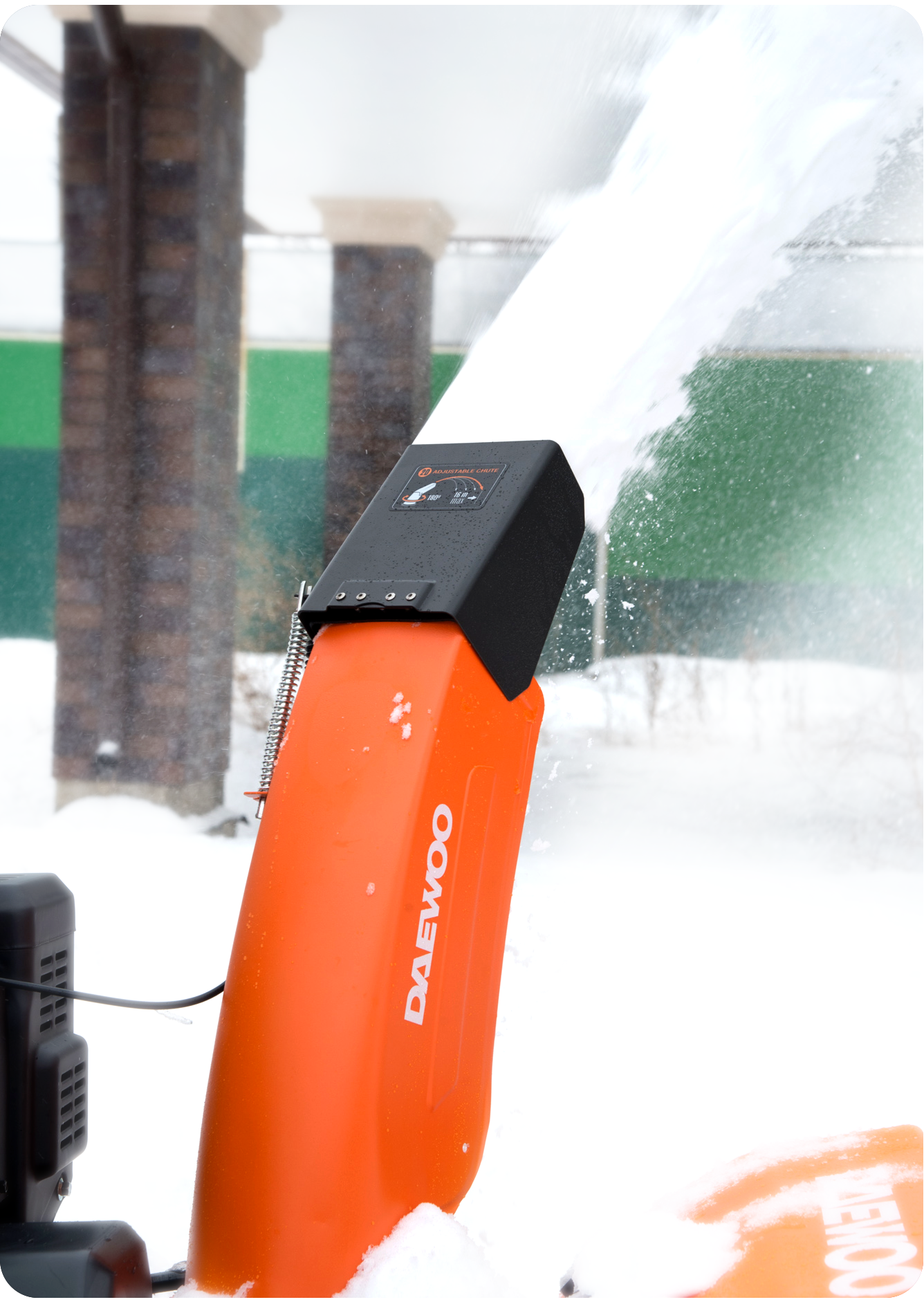 На бензиновых снегоуборщиках Daewoo стоят зазубренные агрессивные шнеки-ледорубы из стали, способные в крошку перемолоть лед и слипшийся снег.