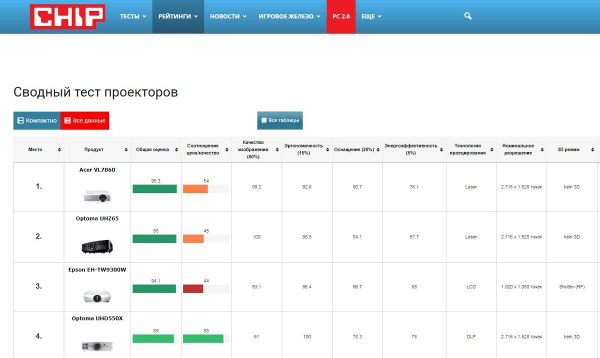 Совет. Список лучших проекторов для домашнего кинотеатра от CHIP даст вам хороший обзор различных устройств, и проинформирует о других функциях, таких как энергоэффективность и субъективное качество изображения.
