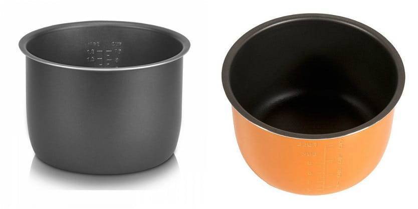 Наиболее популярным материалом для изготовления кастрюлек, используемых в мультиварках, является тефлон. Этот материал считается довольно надёжным и безопасным, стоит недорого. Учёные уверяют, что вещества, выделяемые тефлоновым покрытием при нагревании, не вредят здоровью человека и быстро выводятся из организма.