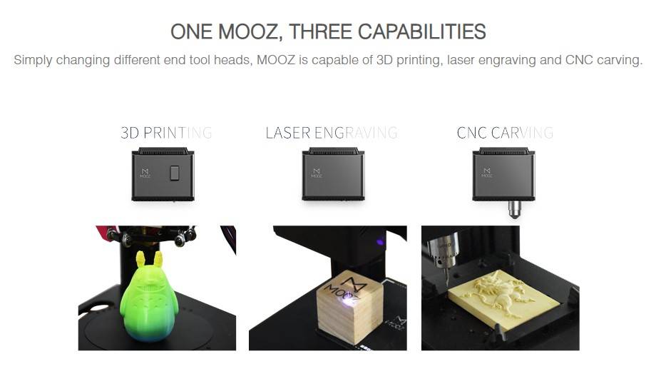 MOOZ отлит из авиационных алюминиевых сплавов, что не только добавляет красоту и элегантность корпусу, но также увеличивает его устойчивость и снижает вибрации во время рабочего процесса. Благодаря модульной конструкции MOOZ сборка и начало использования занимают всего 10 минут. Помимо экономии денег, модульная конструкция значительно упрощает эксплуатацию, обслуживание и разработку.