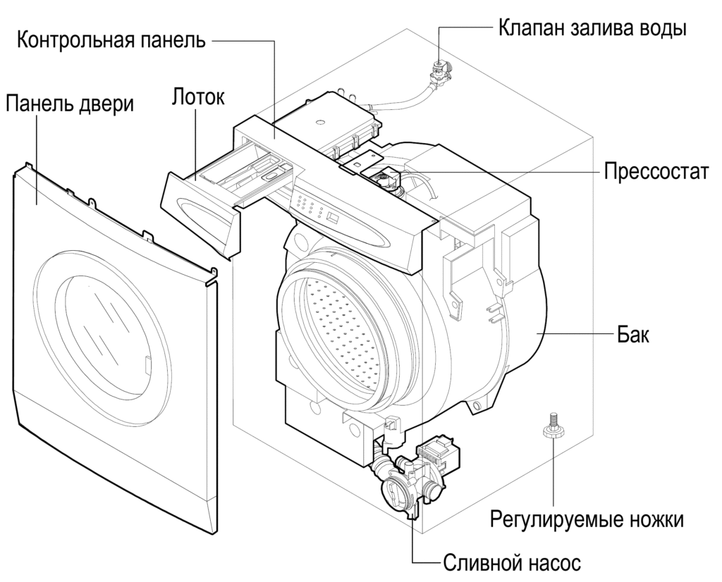 - Отсутствие блокировки дверцы, которая необходима для начала стирки.
