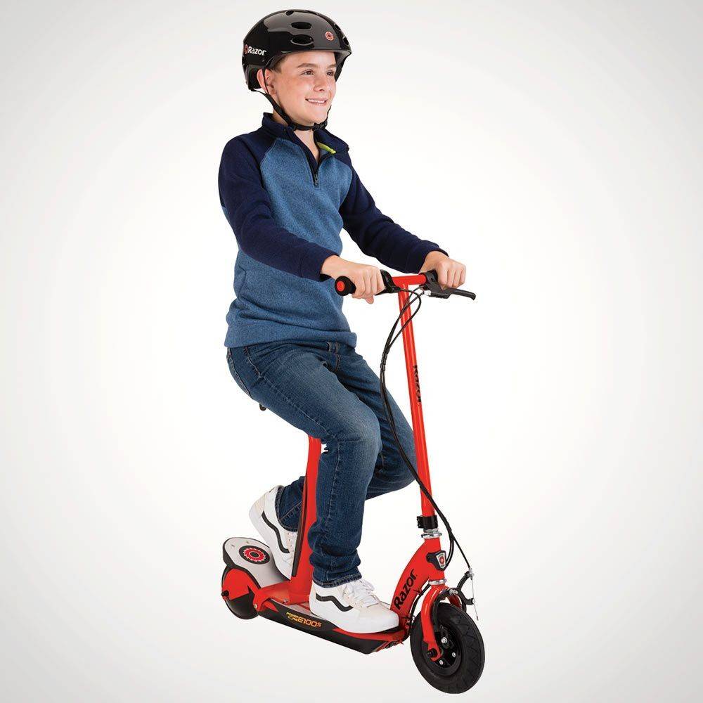 Главное отличие такого электросамоката от других – наличие удобного съемного сидения. С ним поездки становятся еще более комфортными! На полной скорости можно кататься непрерывно в течение минимум 90 минут, что считается хорошим показателем для детского самоката. А еще дизайн Razor Power Core E100S точно не оставит равнодушным ни вас, ни вашего ребенка – он стильный и современный. У модели есть ручной тормоз, с помощью которого можно регулировать скорость, при этом максимальной считается 18 км/час. Рама выполнена из стали, но, несмотря на это, конструкция очень легкая даже для ребенка 6-7 лет – именно с этого возраста пользоваться таким самокатом будет удобно. Использовать этот электросамокат очень просто любому человеку.