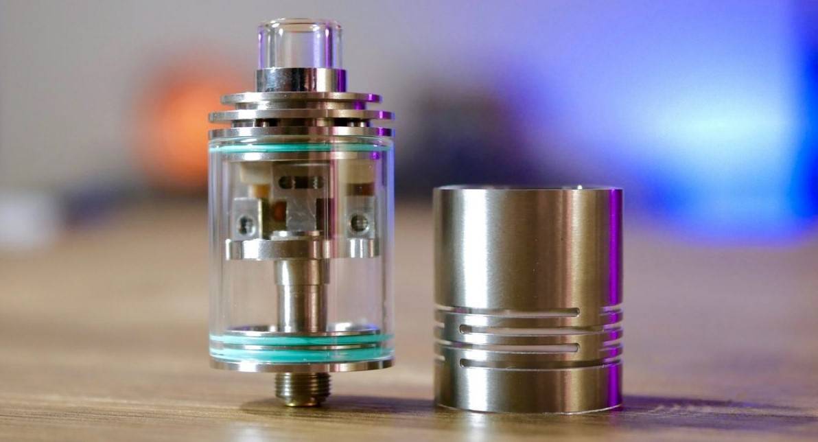 Крышка заправочного отверстия сидит на резьбе. Сама крышка довольно тонкая, поэтому откручивать ее не слишком удобно. Внутри присутствует бортик для защиты от выдавливания жидкости. База расположены четыре стойки и четыре отверстия обдува. Для крепления коилов используются шестигранные винты. Бак обладает нижним обдувом. Затяжка в целом свободная. Тугость дополнительно можно регулировать, если приподнять коилы относительно базы, а также если поставить более широкие. Вкус проигрывает в сравнении с Reload RTA, но плохим его не назовешь.
