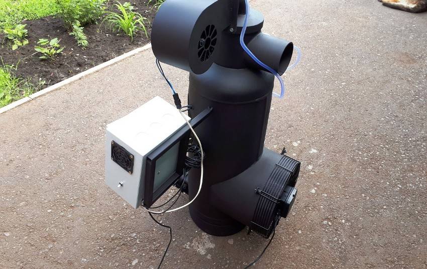 Для повышения работоспособности мини-печи на отработке можно над верхней ее камерой установить герметичный бак с жидкостью. Для подачи и отвода воды к нему крепятся штуцеры, которые размещаются на разных уровнях. Другим вариантом повышения производительности является необходимая конвекция воздуха, что осуществляется с помощью вентилятора, располагающегося вблизи верхней камеры. Забирая теплый воздух от печки, он способствует ее охлаждению, что положительно сказывается на сроке эксплуатации аппарата.