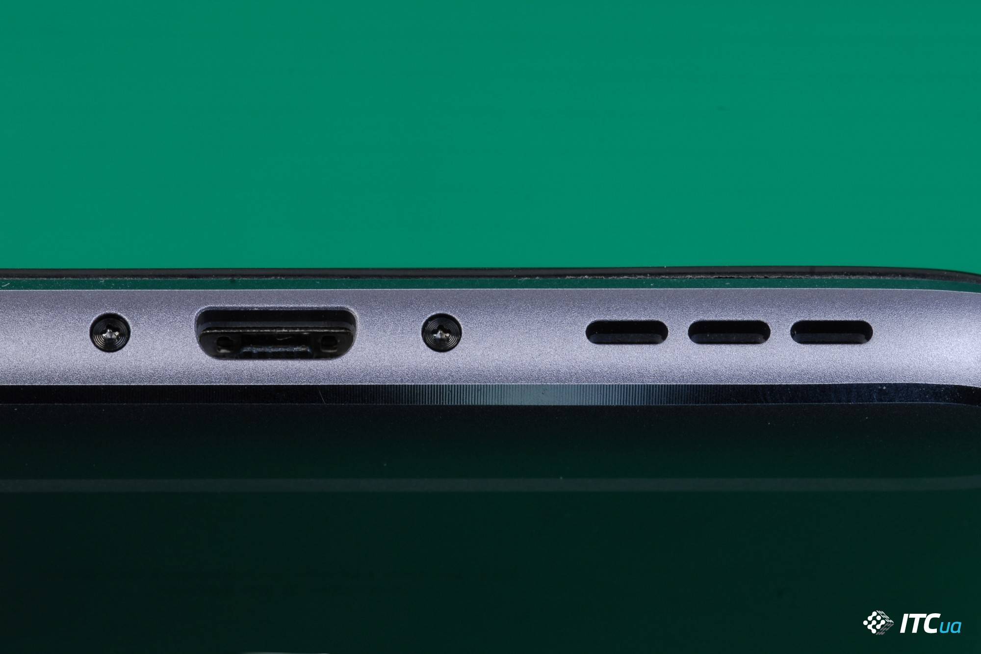 В нижней части корпуса расположены разъем для наушников 3,5 мм, micro USB-порт, динамики и микрофон. Динамик показывает отличные результаты по громкости, но весьма скромные – по качеству звучания.