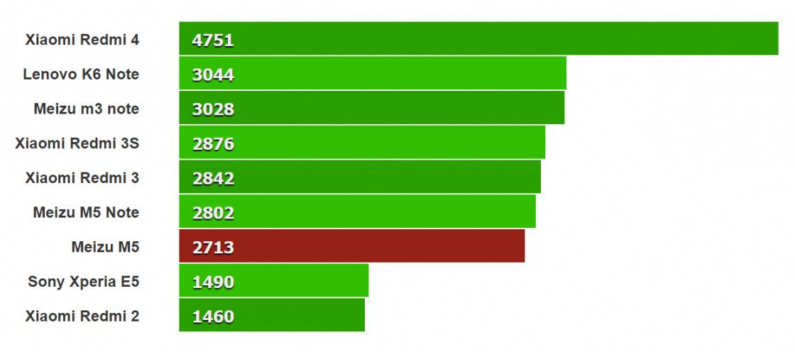 По результатам бенчмарков, Meizu M5 можно отнести к смартфонам со средней производительностью, которые способны реализовать потребности среднестатистического покупателя, хотя многие, возможно, ждали от этой модели большего.