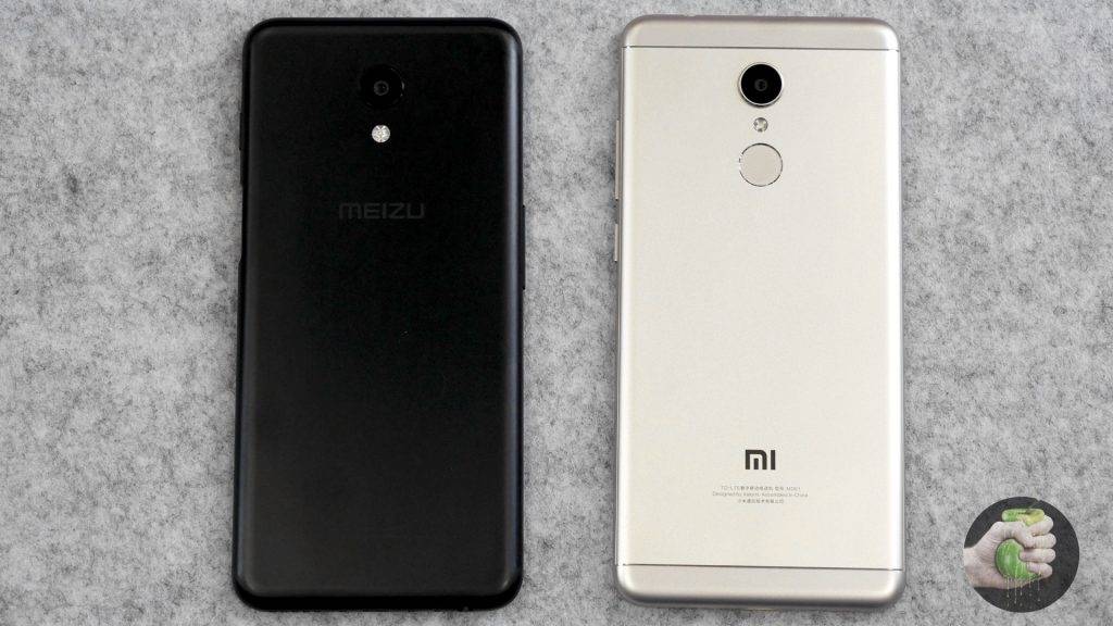 Спереди смартфоны похожи друг на друга почти как две капли воды, а вот задние поверхности оформлены в разном стиле. Хотя вот маленькое замечание: если у Meizu датчики и камера над экраном расположены симметрично, то у Xiaomi два сенсора слева, а камера справа, не так красиво.
