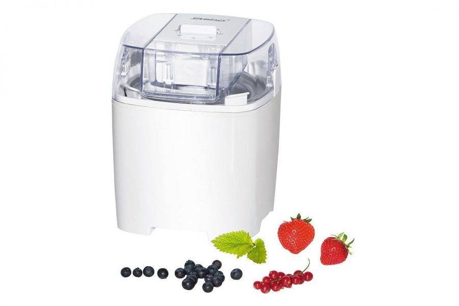 Компактная, полуавтоматическая мороженица с электронным управлением. Устройство представлено в узком корпусе из нержавеющей стали и пластмассы, объем чаши составляет 1,5 литра, что вполне достаточно для приготовления большого домашнего десерта. На крышке корпуса предусмотрен таймер обратного отсчета, который можно запрограммировать на 20-40 минут, по усмотрению пользователей. Мощность Gemlux не превышает 120 Вт, что характеризует прибор как малозатратный на электроэнергию. Еще одним плюсом этой модели является небольшое смотровое окошко, через которое виден весь ход приготовления десерта.
